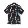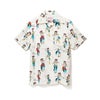 沖縄のタトゥーアーティスト「W-OKI KENTA」氏書下ろしの花笠 (琉球衣装)を被ったフラガールを全面に配したショートスリーブアロハシャツです。