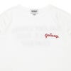 ブランド定番のレーヨン混Tシャツに、シロップボトルの会社名を刺繍で落とし込んだデザインワーク。
