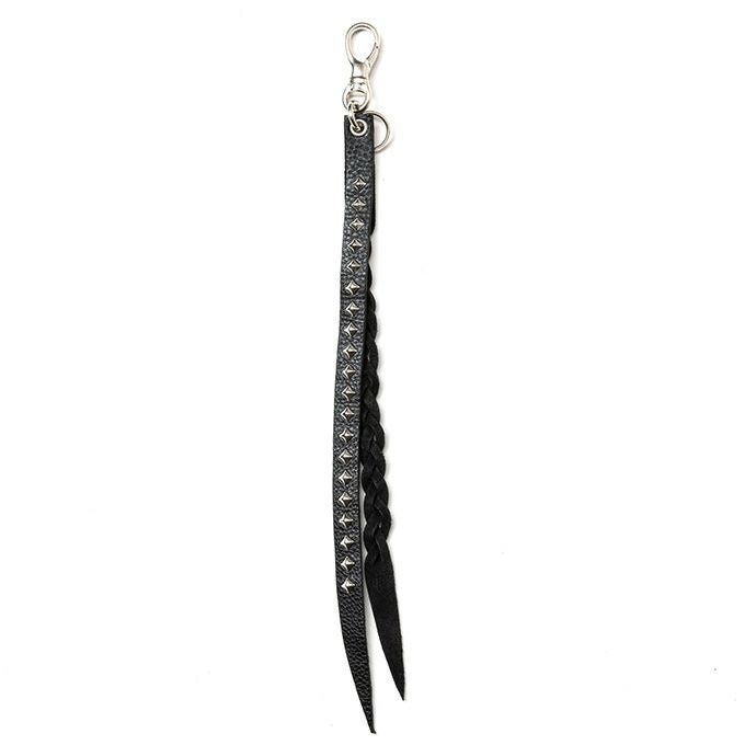 スタッズレザーと編み込みレザーで製作されたSTUDS & KNITTING LEATHER LONG KEY RING <TYPE B>です。
