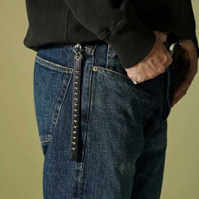 STUDS LEATHER LONG KEY RING