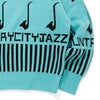 メインモチーフは鍵盤や音符等の音を感じるモチーフとCITY COUNTRY CITY JAZZのロゴをたジャガード編みで落とし込んだデザインワークに仕上がっております。