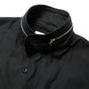 スタンドカラーは内蔵されている簡易フードを省き、納まりがよく、程よい厚みを持たせたシルエットに仕上げております。