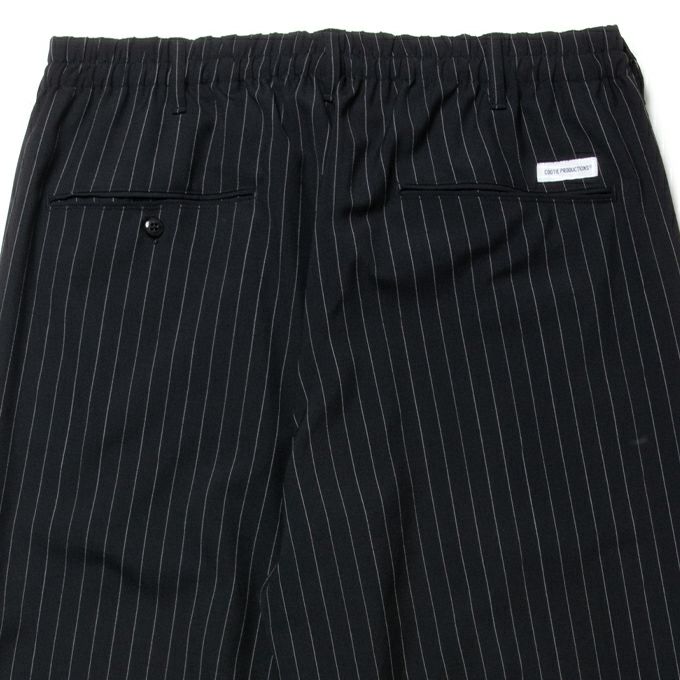 光沢とドレープが特徴のウールとポリエステル混紡のウォッシャブル平織生地を使用し、製作されたSTRIPE T/W 2 TUCK EASY PANTSです。