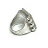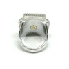 両サイドに6ポイントを配置したスクエアリングです。 中央にはスクエア型のフラットなターコイズ、裏には18Kのイーグルフェイスポイントが入っています。