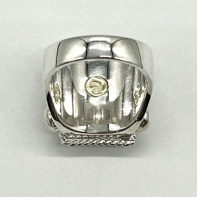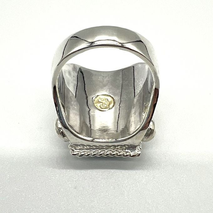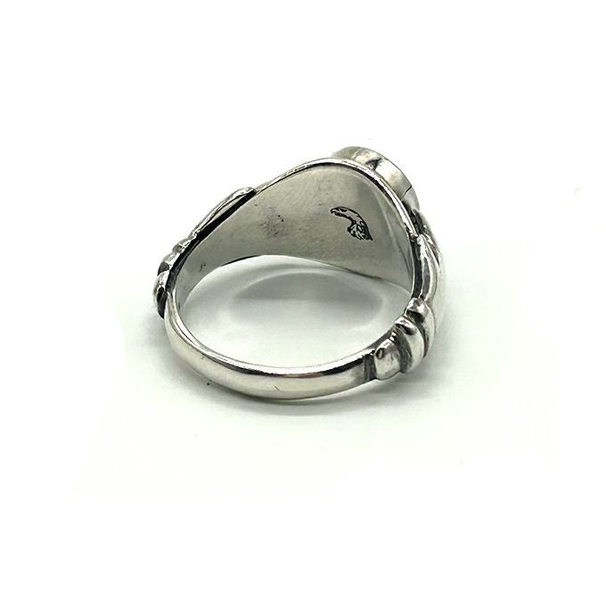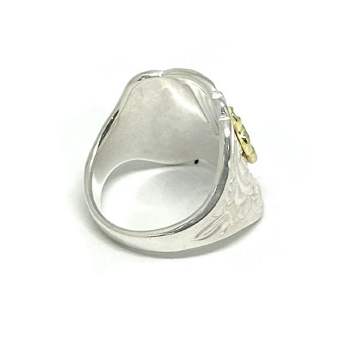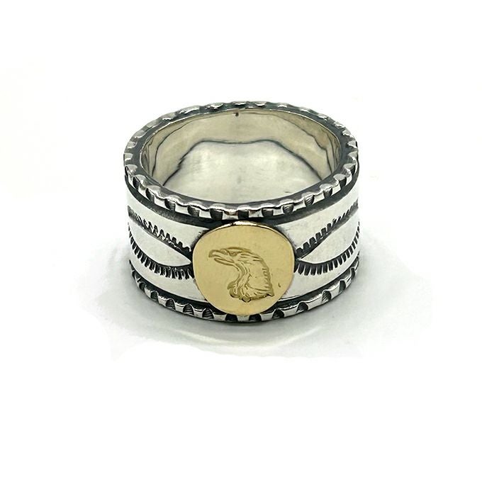 EAGLE HEAD STAMPED RING"18K GOLD ACCENT"