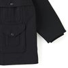 ブークレーヤーンを用いて織り上げたメルトンは不均一かつモダンな表情を持っており都市生活者のためのコンフォタブルなフィッティングラインは、アーカイブピースの持つそれとは別物でとても品の良い佇まいを見せる。