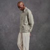 経糸にロープ染色を施した20/1、緯糸に追撚した18/1を使用した5ozのシャンブレー。緯糸に追撚糸を使用している為、粗野感や凹凸が見られ、使用していくごとに経年変化が見られる生地。