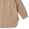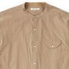 オリジナルで型から起こして製作したメタルスタッドボタンと長めのレングスが目を引くバンドカラーシャツです。