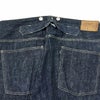 生地はいわゆるキバタと言われる織り上がった状態のものから、特殊な方法でサンフォライズ(防縮加工)のみをかけています。 通常の防縮方法とは違いますのでいわゆるリジッドデニムと呼ばれる表面にノリが付着した固い生地にはならず柔らかな手触りを表現しました。