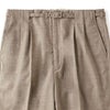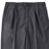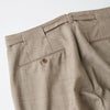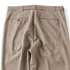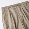 目を引くのはダーツやポケット切り替えを利用して作られたベルトループ。 フラットに見えるウエストはミニマルでモダンな印象を受けます。