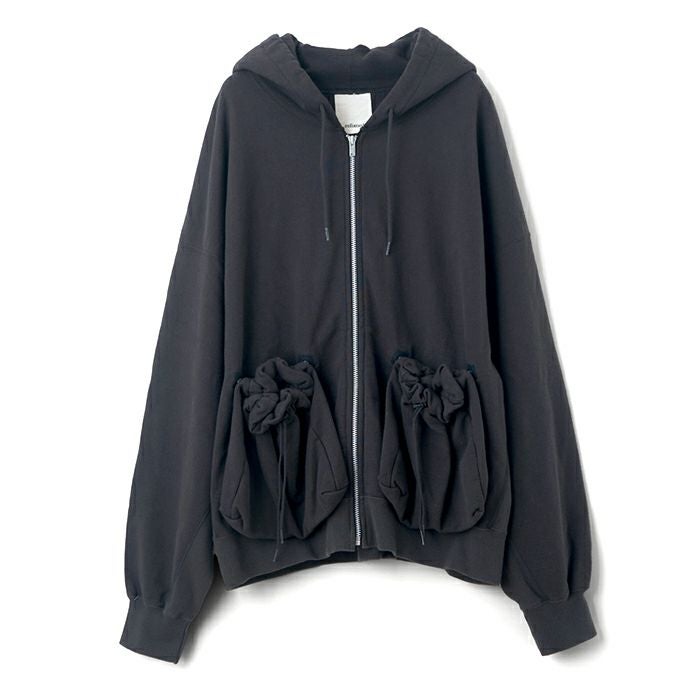 左官に使用するコテ袋をイメージした腰ポケットが特徴的なフルジップパーカー。