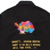 バックにテキストに添えて「幹田 卓司」氏が描き下ろしたグラフィックアートを刺繍で落とし込んだ、コラボレーションならではのデザインワークに仕上がっております。