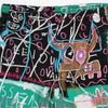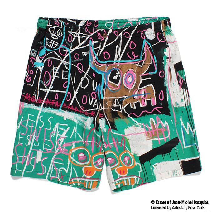 1960年ニューヨーク・ブルックリンで生まれ、ヘロインのオーバードースによりわずか27歳で死去してしまった、別名ブラックピカソとも呼ばれたアメリカの画家「ジャン=ミシェル・バスキア」とコラボレーションにより、製作されたJEAN-MICHEL BASQUIAT / HAWAIIAN SHORTS ( TYPE-4 )です。