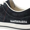 アッパーのステッチをラスタカラーにアレンジし、外側に「WACKO MARIA」のテキストロゴを刺繍で配置。