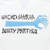 左胸部に「NECK FACE」書き下ろしによる「NECK FACE」のテキストを刺繍で配し、バックに「NECK FACE」書き下ろしによるグラフィックプリントと「WACKO MARIA」「GUILTY PARTIES」のテキストプリントが落とし込まれた、コラボレーションならではの1着に仕上がっております。
