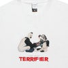 フロントに映画「TERRIFIER」のグラフィックプリントを落とし込み、バックに「TERRIFIER」のテキストを刺繍で落とし込んだ、コラボレーションならではのデザインワークに仕上がっております。