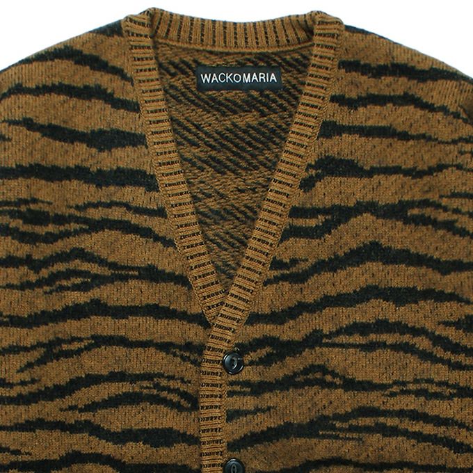 全面に配されたタイガー柄を粗めな編みで落とし込んだデザインワークに仕上がっております。