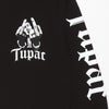 左胸部に「TUPAC」のグラフィックプリントを配し、両袖に「TUPAC」のテキストプリントを配した、コラボレーションならではの1着に仕上がっております。