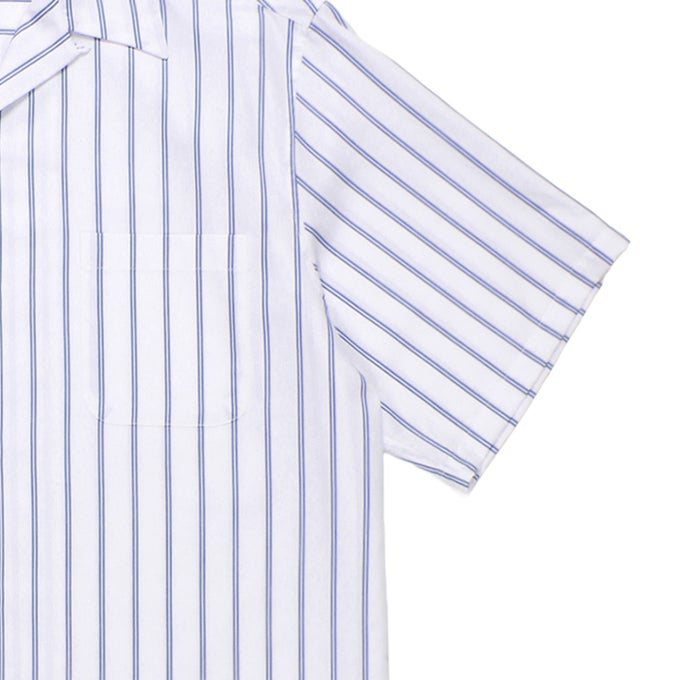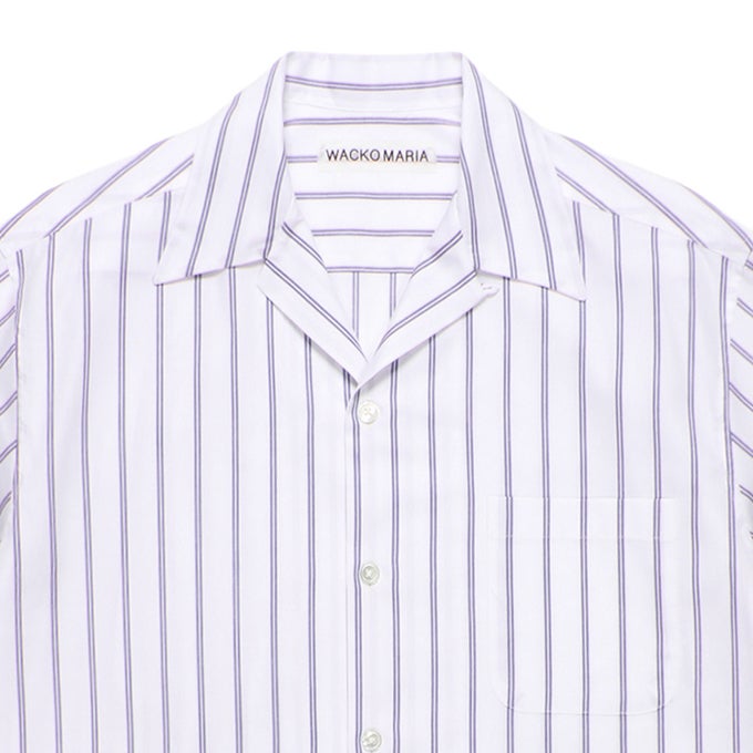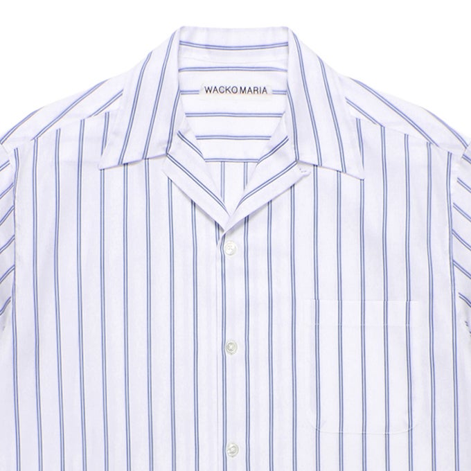 他の画像を見る WACKO MARIA BEZ TEKSTIL / STRIPED OPEN COLLAR SHIRT ¥ 31,900 税込 販売期間 2026/04/11 12:00 〜 カートに入れる お気に入りに登録する