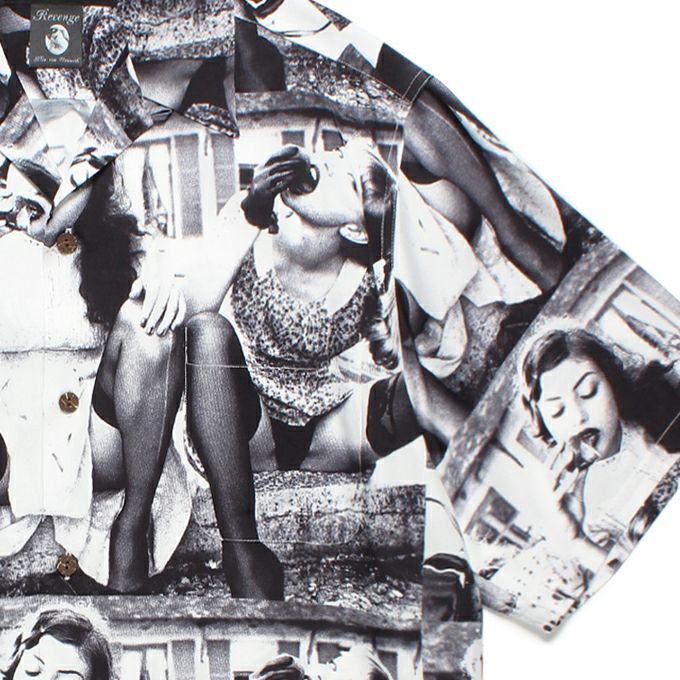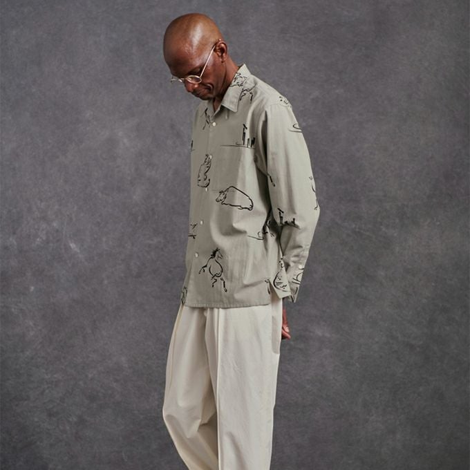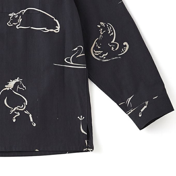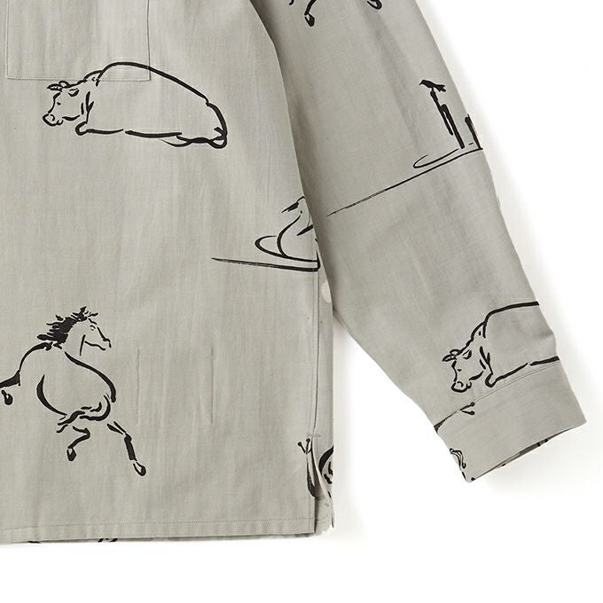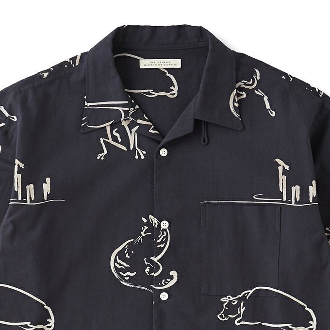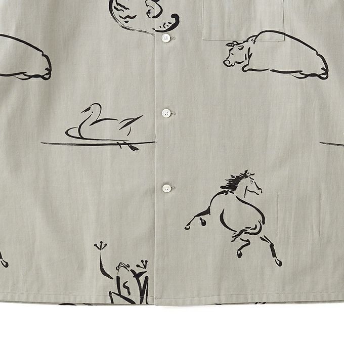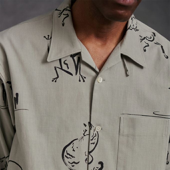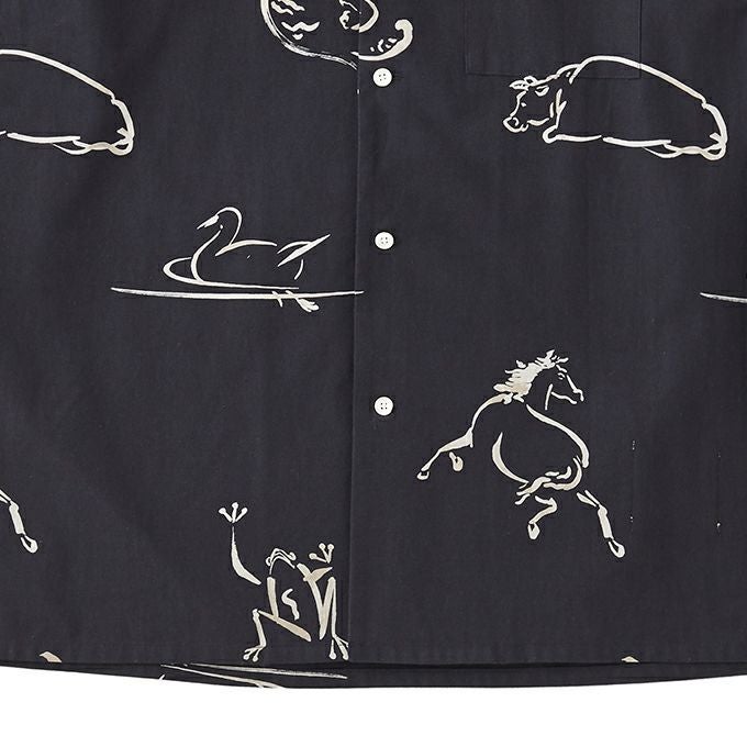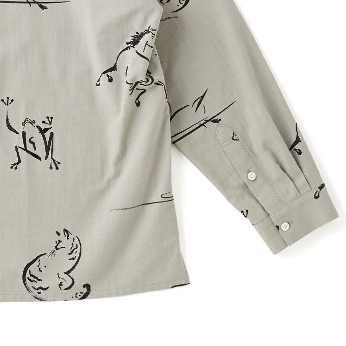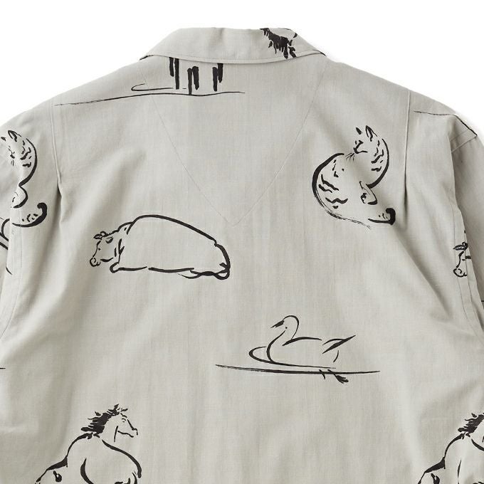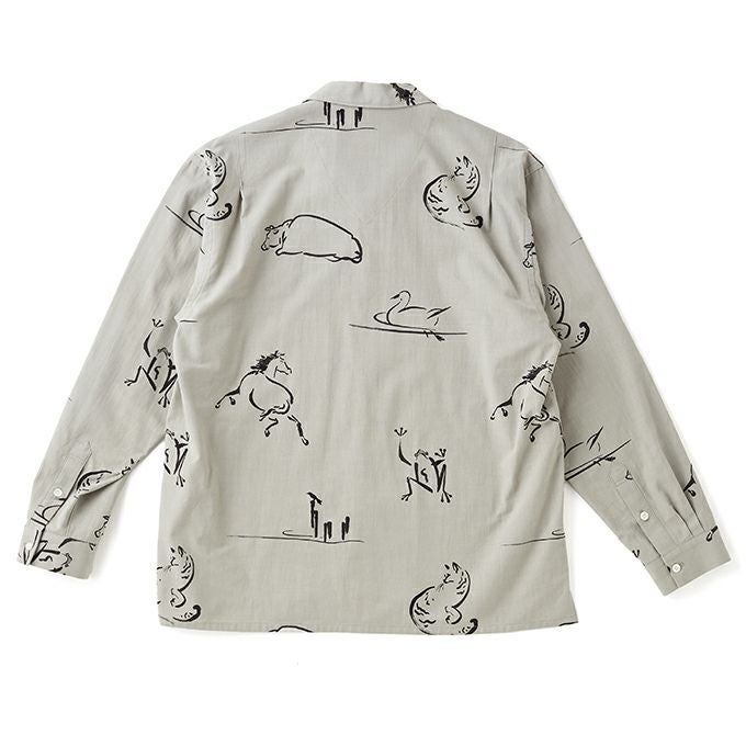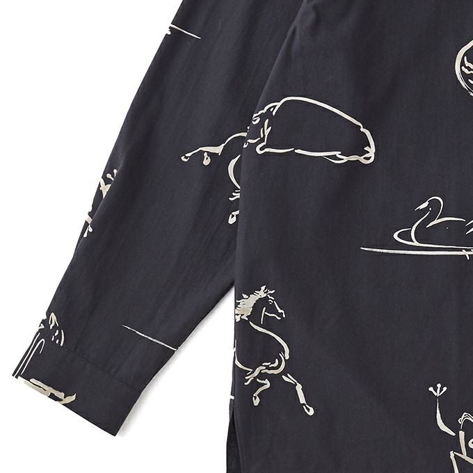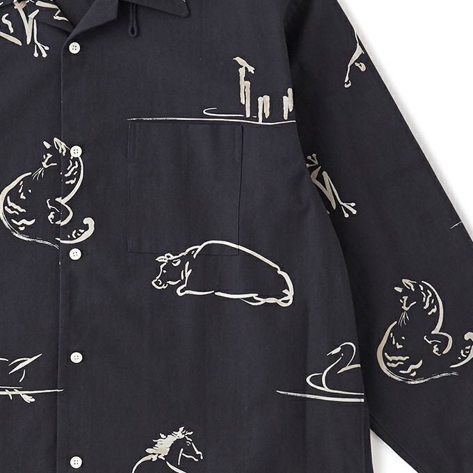 ORIGINAL PRINTED OPEN COLLAR SHIRTS "Animal Drawing" (Long-sleeve)