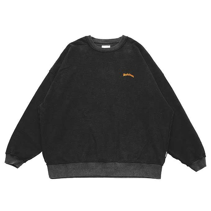 クルーネックスウェットを裏返しにし、ブリーチ加工を施したクルースウェット。