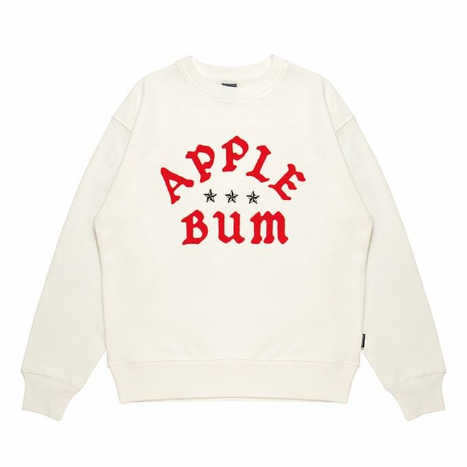 フロントにオールドイングリッシュフォントで【APPLEBUM】のロゴをプリントしたクルースウェット。