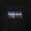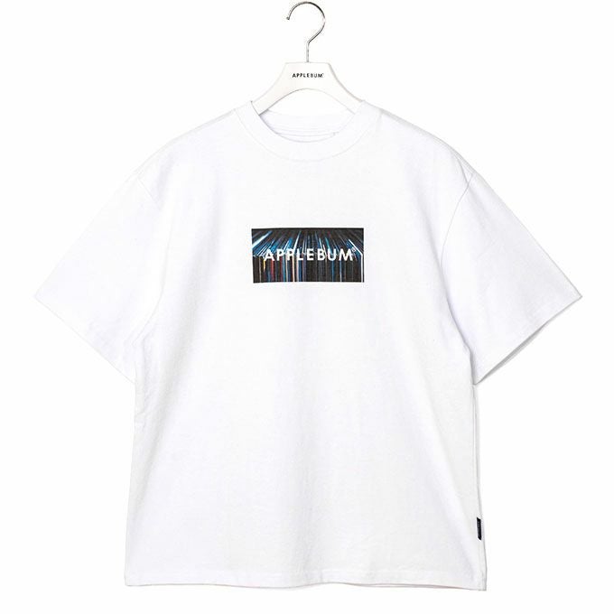APPLEBUMのロゴを、レコードの背表紙写真に重ねたボックスロゴTシャツ。