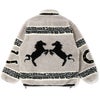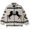 一枚仕立てで作製され、フロント、バックにホース、両袖にホースシューの入ったカウチンセーターのようなデザインです。