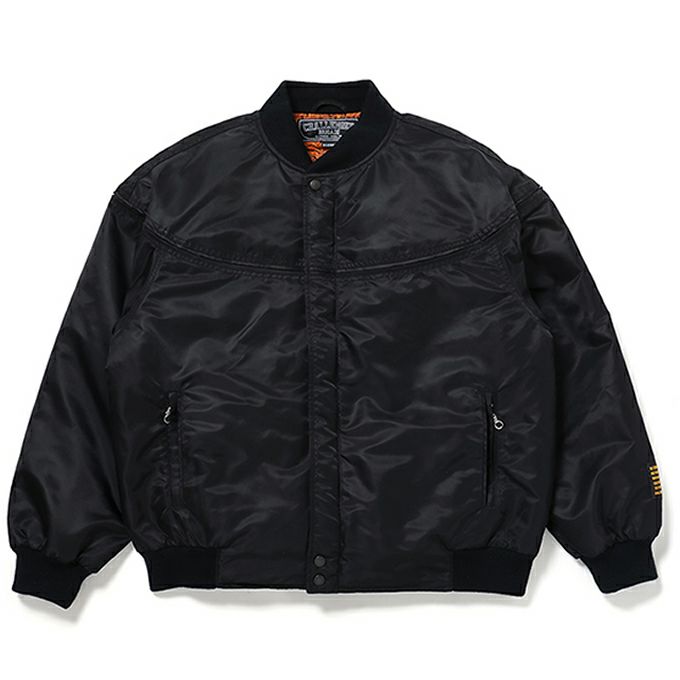 厚手でしっかりとしたMA-1ナイロンを使用したダービージャケット。