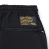 左腿にブランドロゴの刺繍が入り、バック右ポケット上部にネームタグが付きます。