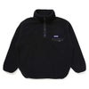 ポリエステルフリース素材で作製された、スタンドカラーのプルオーバーシャツです。