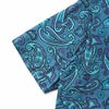 オリジナルペイズリー柄をプリントした総柄生地で作製されたオープンカラーシャツです。