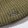 "センターにロゴ刺繍を配したローゲージのシングルビーニー。
