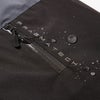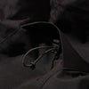特殊なパターンで雨の侵入を防止するフードを襟の内側に収納することで、スタンドカラージャケットとしても着用可能。