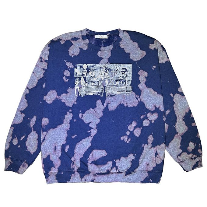 日本のTIE DYEアーティストのパイオニアであるDEAD DYEにタイダイ染をしてもらい、フロントにローライダーなグラフィック、バックプリントはチカーノアートコレクターでも有名なCheech Marinが出演映画での決めゼリフが大胆にプリントされたチカーノソウルスウェット。