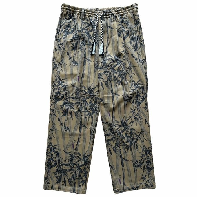 ヘリンボーンツイル生地に所々にバンブーボングがハイドされたオリジナルバンブー柄をプリントしたイージーパンツ。
