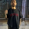 オリエンタルイングリッシュでF.T.W.の刺繍が施されたされたTシャツ。