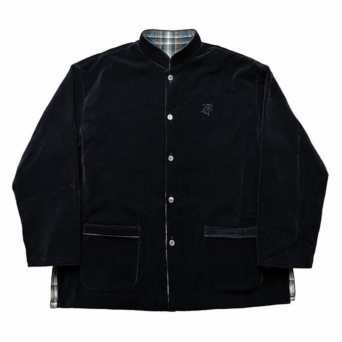 上質で光沢のあるベルベット生地をエアータンブラー加工して自然な風合いにした生地とオリジナルレーヨンオンブレ生地を使用したこれからの時期に使い勝手のいいリバーシブルシャツジャケット。