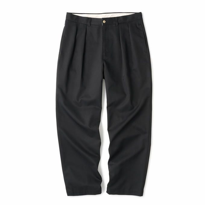 肉厚のコットンチノを使用したタック入りスラックスパンツ。
