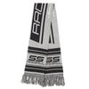 2枚仕立てのジャガードスポーツマフラー。ミックスカラーのフリンジ付き。SS RADIALLロゴグラフィックがジャガードで入る。