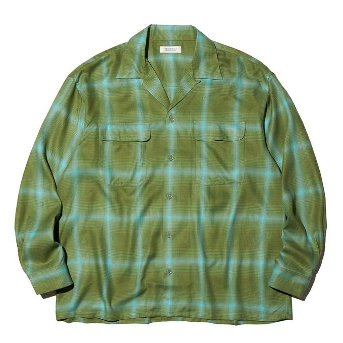 20スフレーヨンを使用した綾織りオンブレチェック生地のオープンカラーシャツです。