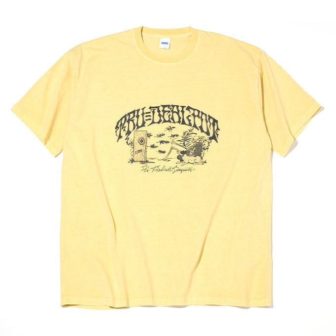 フロントとバックには染み込みプリントでグラフィックが施され、ヴィンテージ感のある仕上がりになっています。