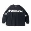 右袖から左袖にかけてTIGHTBOOTHロゴを大きくプリントしたロングスリーブTシャツ。