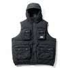 ミニリップストップ生地を使用したフード付きダウンベスト。