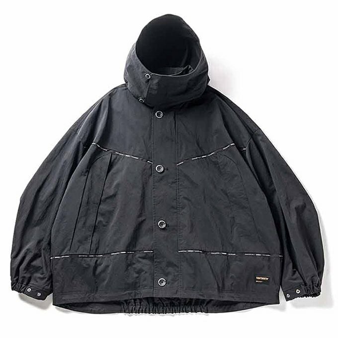 撥水加工の施されたナイロンツイル素材のボックスシルエットジャケット。