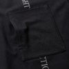 フロント左胸にはロゴプリントの上からサイドオープニングのパッチポケットを配置。