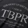 ブランドのアイコニックなメッセージをバックにシルクスクリーンプリントした半袖Tシャツ。