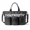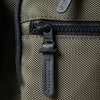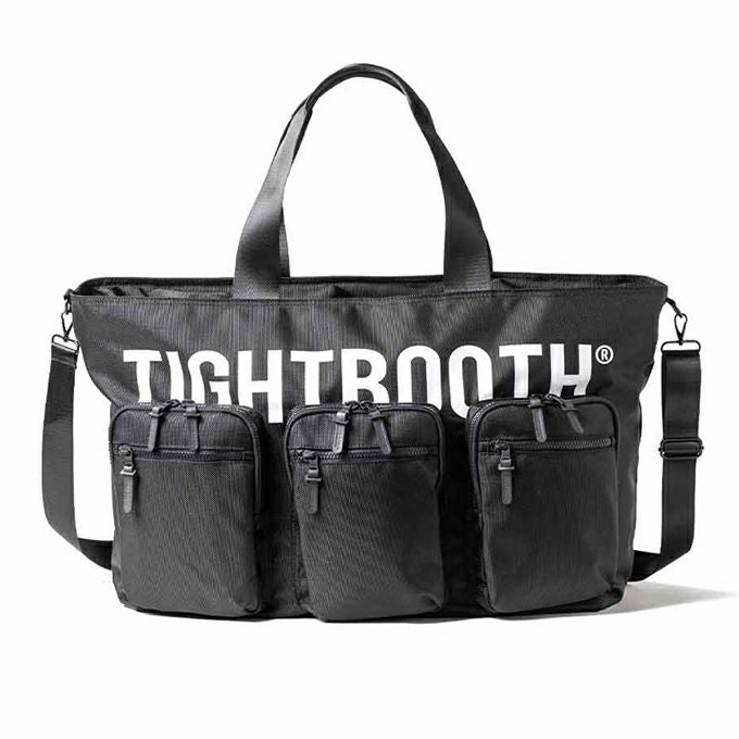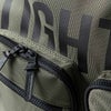 フロントのロゴプリントに重なるように3つのダブルレイヤーマチポケットを配置し、内側にもポケットを搭載。