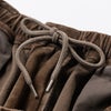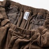 ゴム入りのウエストバンドはベルトループと内出しのスピンドルコード付き。