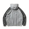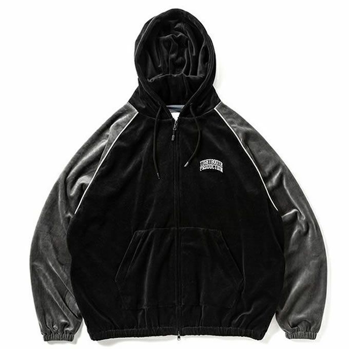 程よい落ち感と滑らかな肌触りのベロア生地を表地に採用したフード付きトラックジャケット。